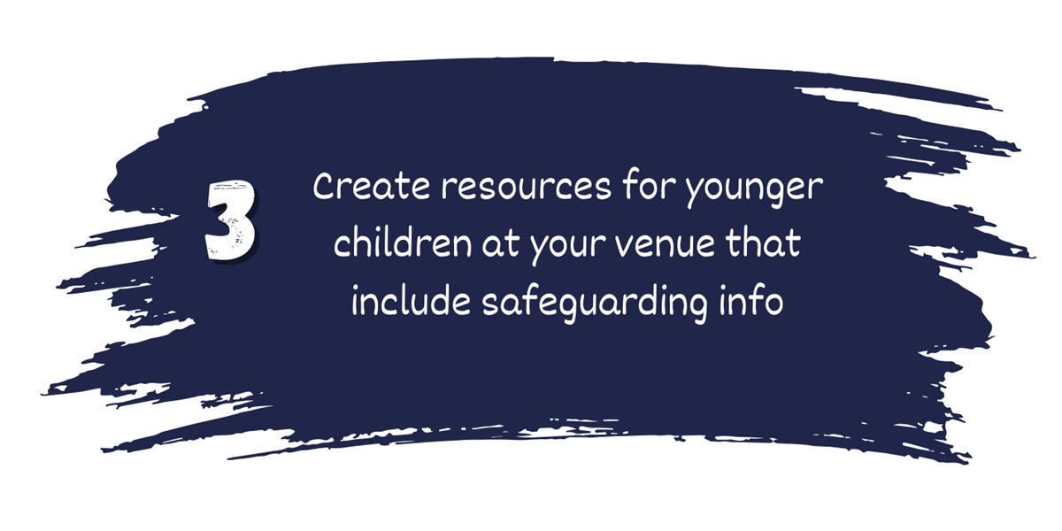 We have a wordsearch and colouring page in the resources section. Could you make your own? Or create a venue mascot that could help you to deliver key safeguarding messages to younger children? Upload documents and photos to show us what you come up with. |