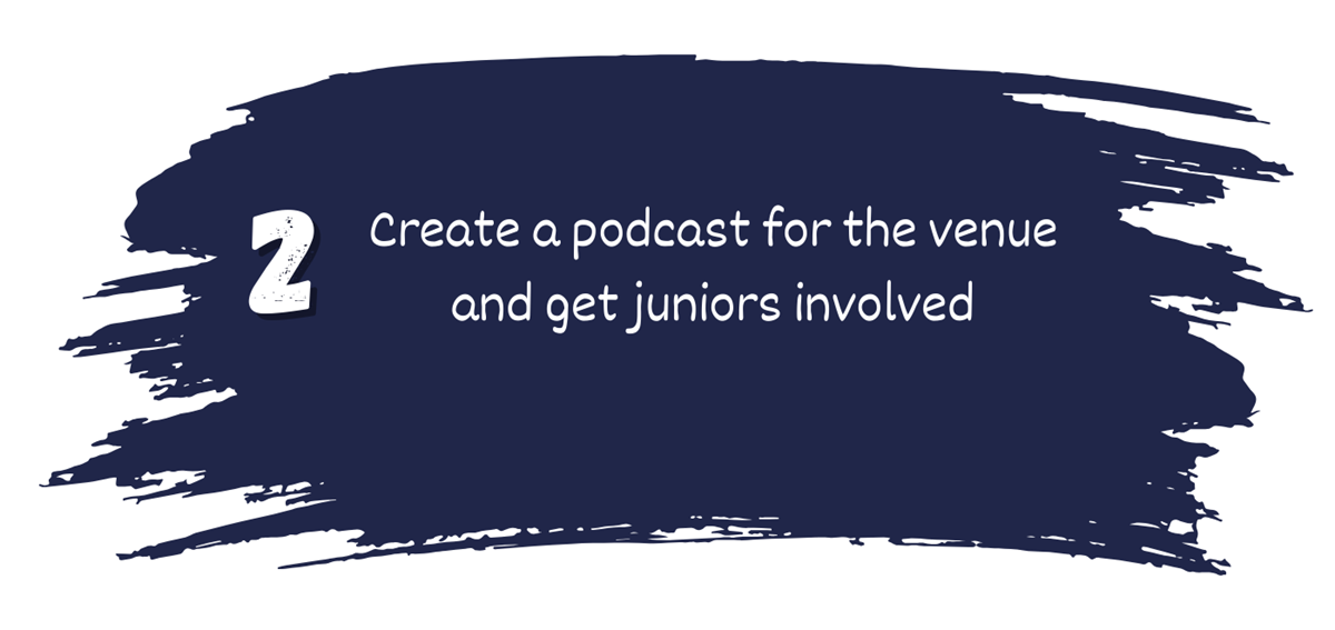 Find out what topics are important to juniors at your venue and use these to plan your podcasts. Your first one would be another great opportunity to introduce yourself in your role and share your plans. Send us the links - we can't wait to hear! |