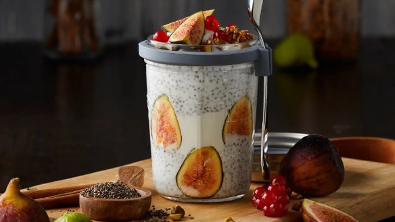 - In a small bowl, whisk together FAGE Total yoghurt, milk, maple syrup, and chia seeds. Stir and refrigerate for at least 4 hours or overnight to soak.