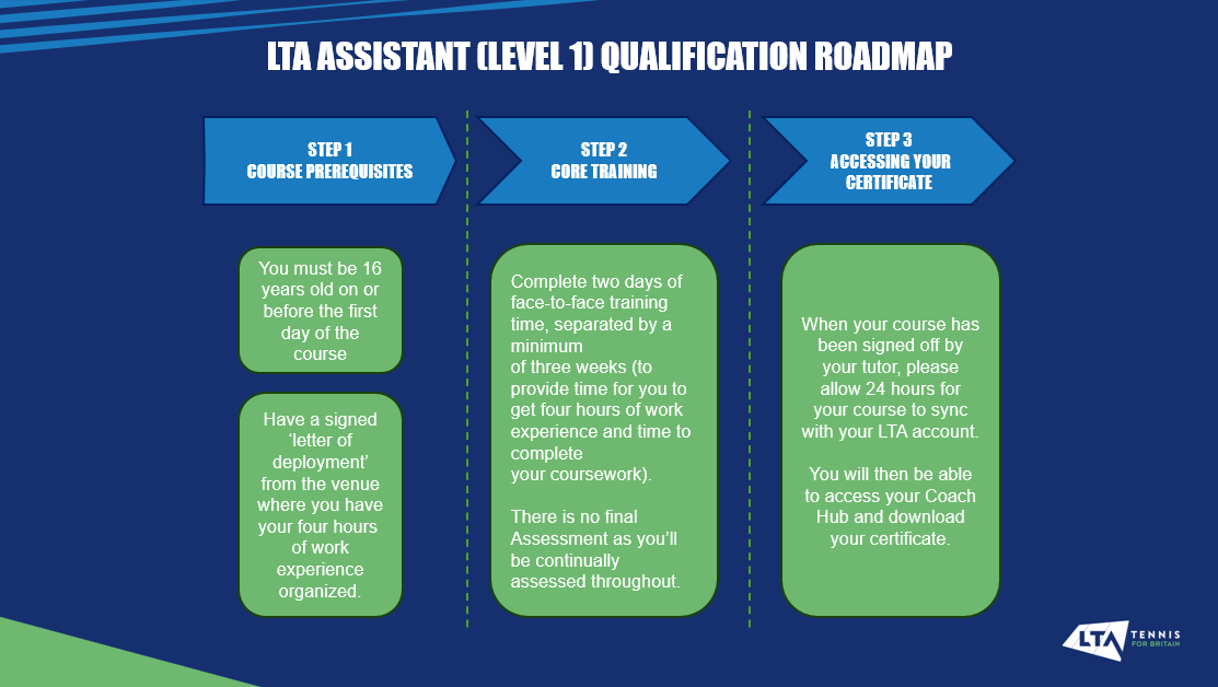 What is the roadmap to gaining an LTA Assistant (Level 1) qualification?