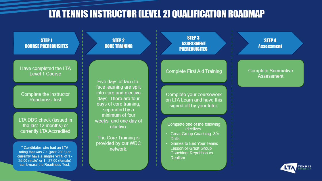 Please find the roadmap diagram for gaining an LTA Instructor (Level 2) qualification below.
